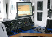 In addition to the built-in survey PC there are two other processors dedicated to electronic chart plotting, track logging and dynamic position control. All instruments are discreet, and some critical components are duplicated ('Aquadynamic' has two DGPS receivers in addition to the survey DGPS), but all data is shared throughout the system.
